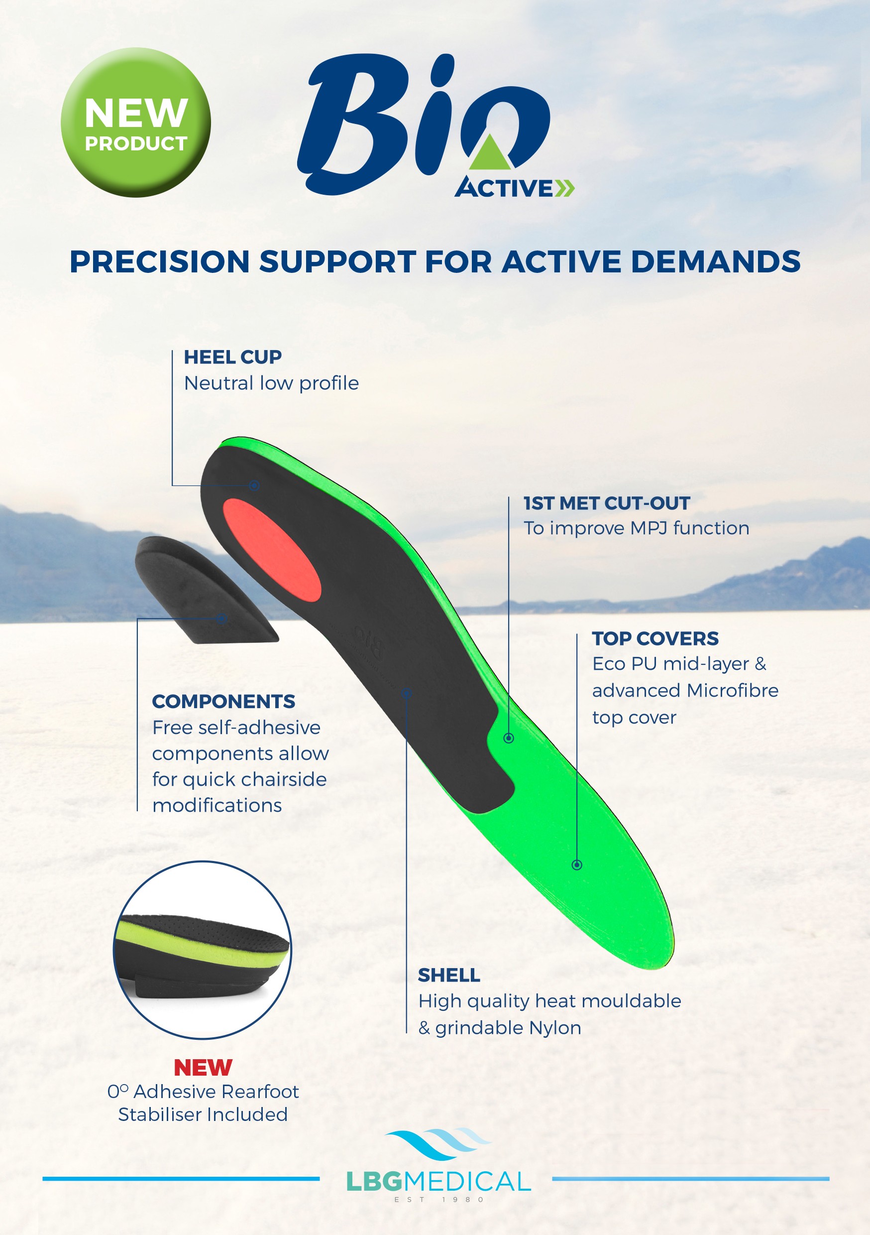BIO-Active is a low-profile, insole designed for slim, space-limited footwear such as football boots, trainers and dress shoes.
